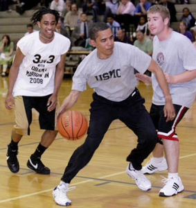 El actual presidente de Estados Unidos es un apasionado del baloncesto. Durante su actual mandato como presidente, ha participado en multitud de ocasiones en partidos de baloncesto con carácter benéfico, exhibiciones llevadas a cabo en alguno de los High Schools que ha visitado, etc. Además, al llegar a la Casa Blanca, una de las primeras medidas que tomó fue la de instalar una cancha de baloncesto en sus instalaciones.